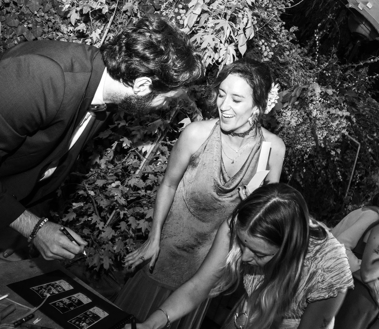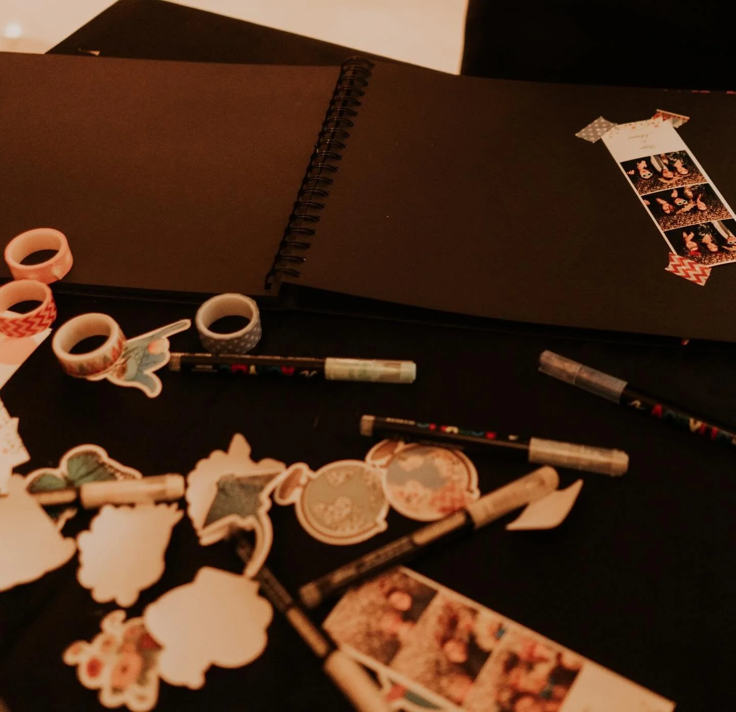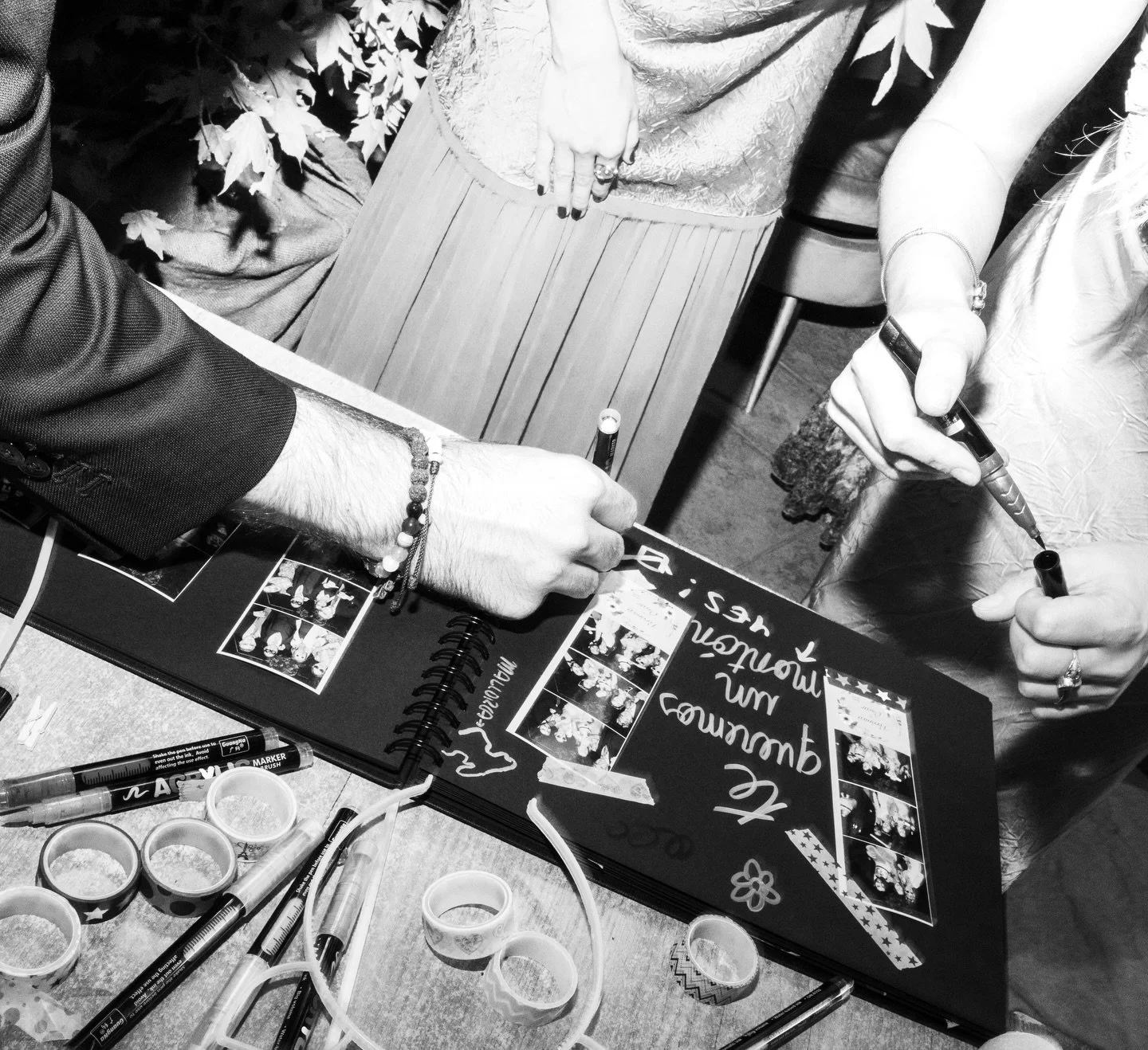 Creamos un álbum especial para los anfitriones con dedicatorias y fotos pegadas en directo, acompañado de atrezzo divertido adaptado al estilo de la celebración.